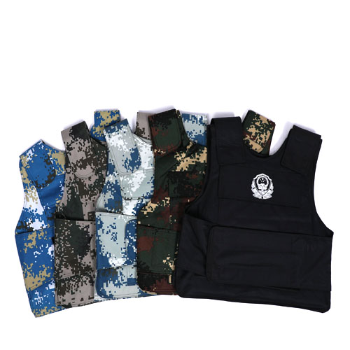 1)穿着时,调整肩带高度,使背心下沿置于腰带处,束紧腹带将尼龙塔扣完整地搭接好,使防刺服紧贴人体;